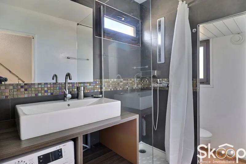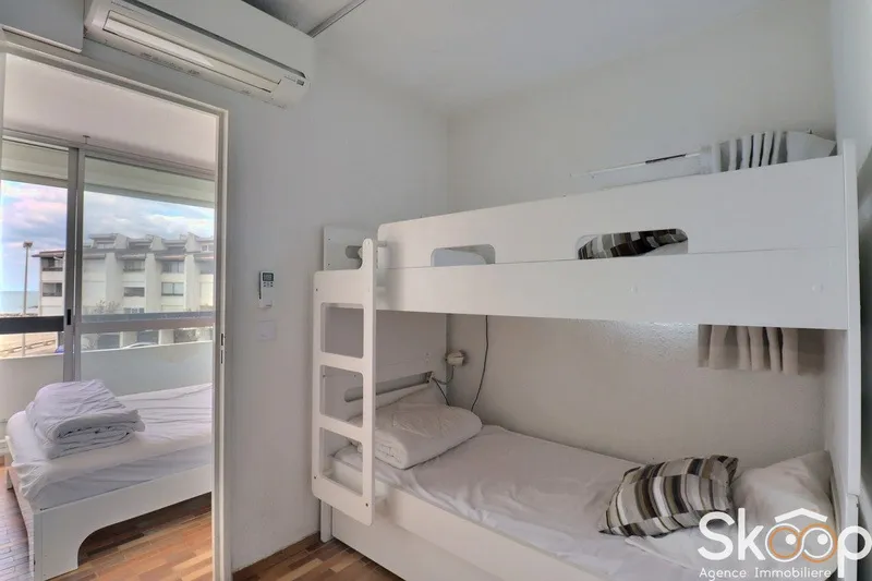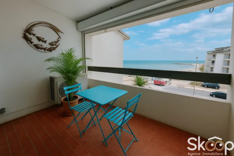 Proposé par SKOOP Agence Immobilière, cette propriété illustre parfaitement le charme de la vie en bord de mer, entre lumière et sérénité. Deux chambres, une salle d’eau avec toilette, une alcôve et un séjour prolongé par une terrasse et une loggia exposées Sud-Ouest composent cet espace chaleureux.